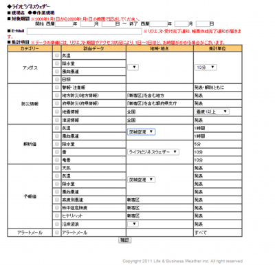 解析値や予報値は、株式会社ライフビジネスウェザーの気象解析技術をもとに、現場の気象データを解析・推定したものです。発注者等への提出時に、根拠資料となることを保証することはできませんので、予めご了承ください。